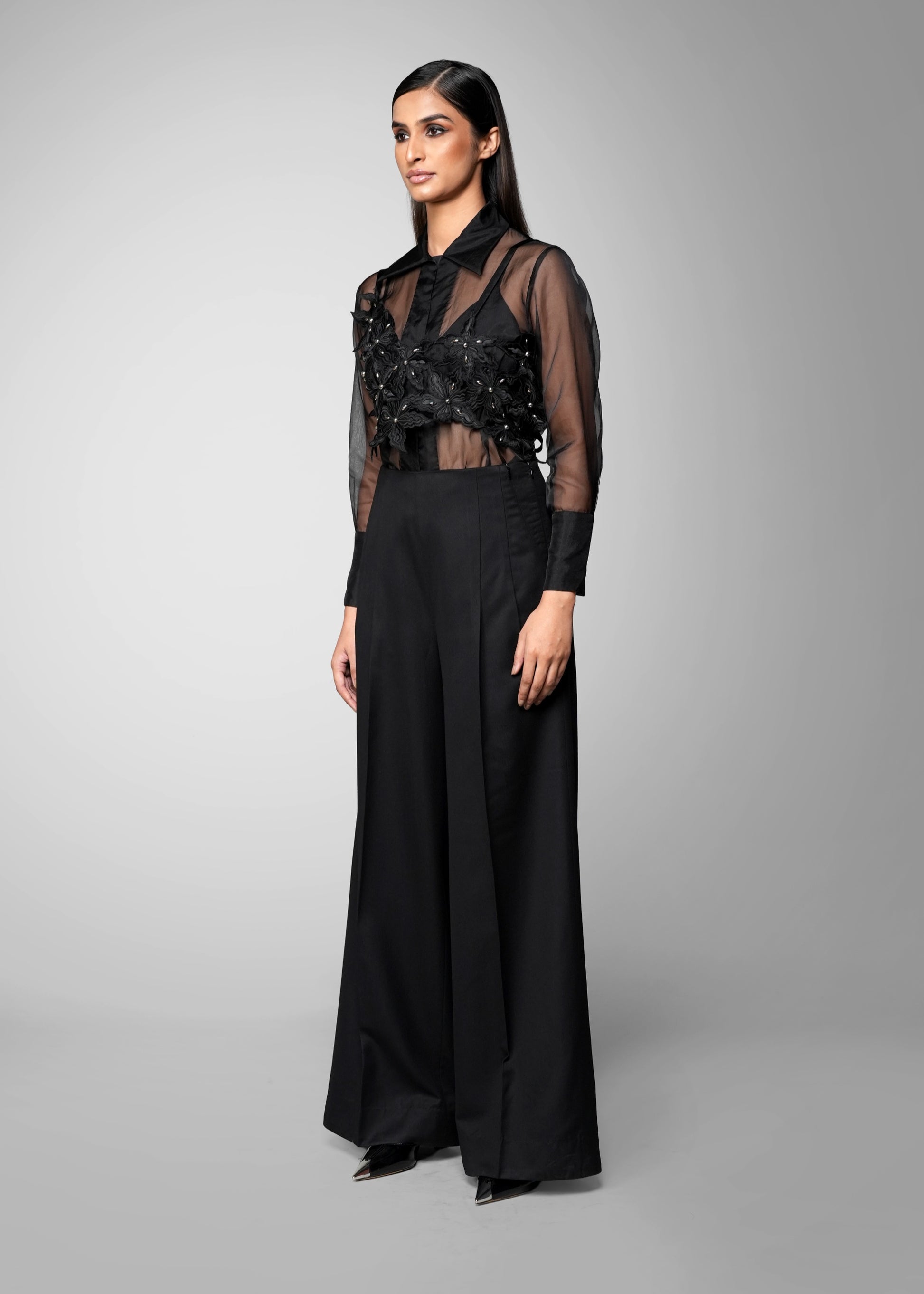 - Details - Hand-cut floral motifs, intricately embroidered and patched together, accented with metallic embroidery, and joined with satin strips for tying